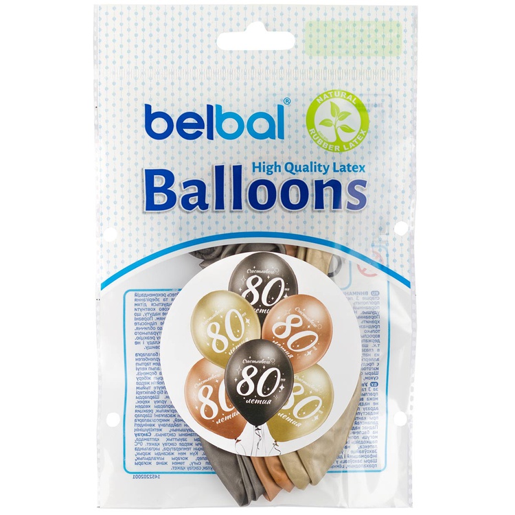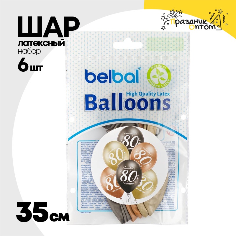 Шар латексный 35см Набор 6 шт Юбилей - 80 (Ассорти)