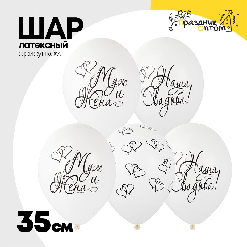 Шар латексный 35см Наша свадьба (Белый)