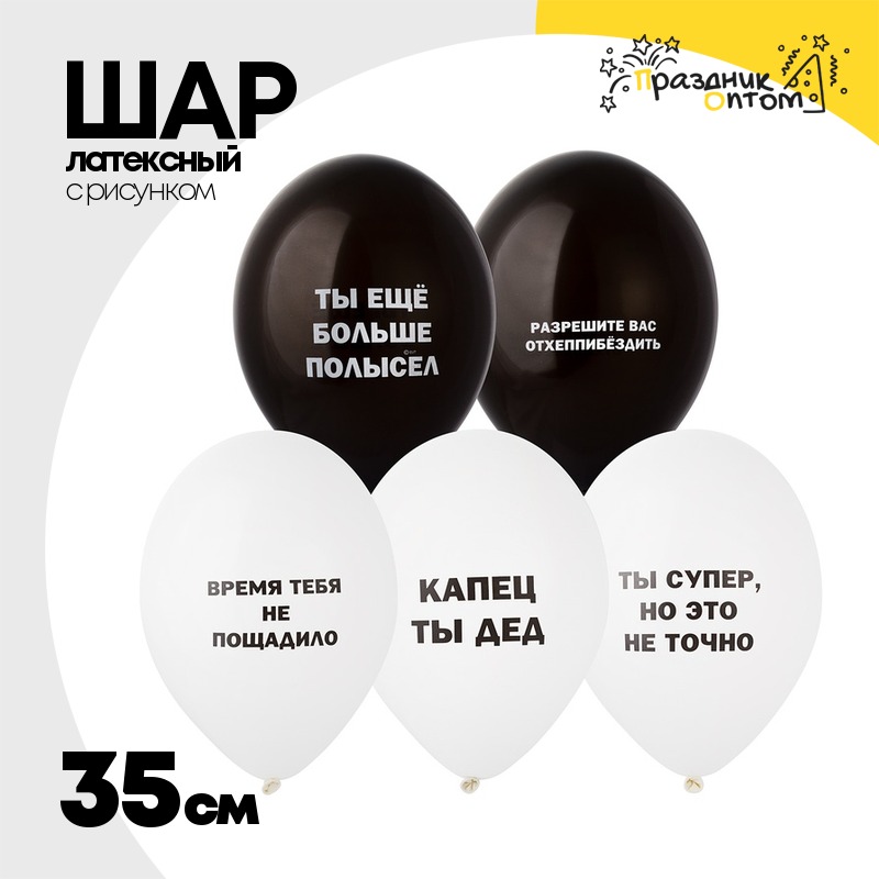 Шар латексный 35см Оскорбления мужские (Белый, Черный)