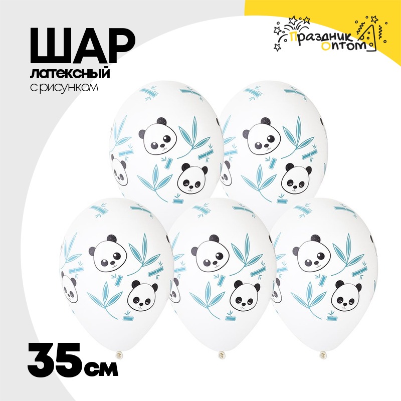 Шар латексный 35см Панда Бамбук листья (Белый)