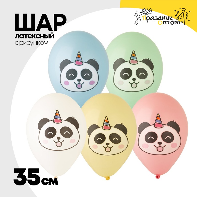 Шар латексный 35см Панда-Единорог (Ассорти)