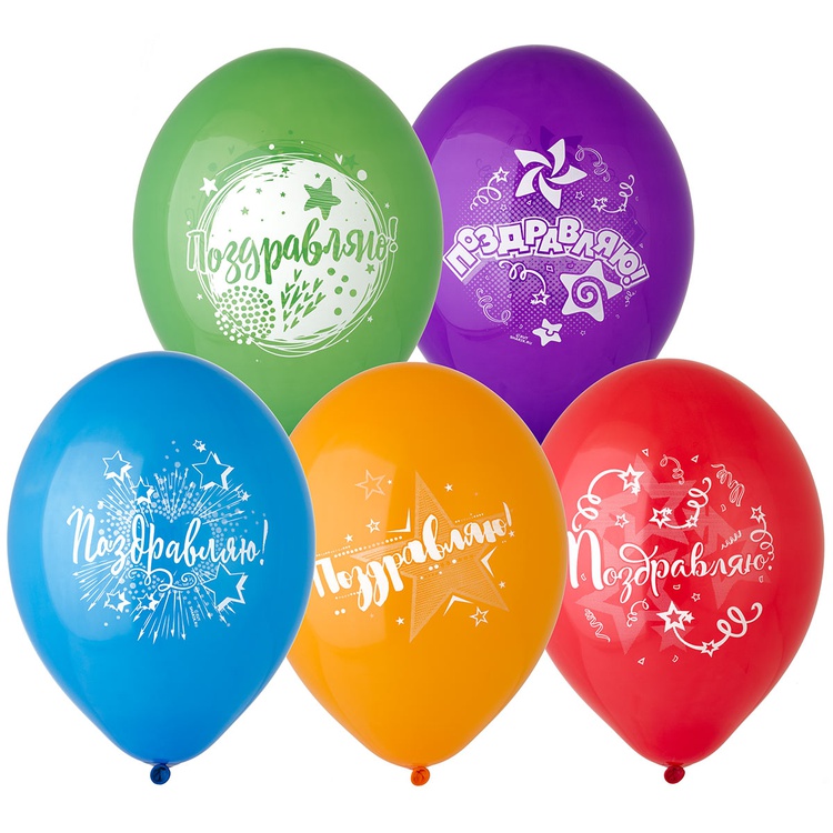 Шар латексный 35см Поздравляю! (Ассорти)