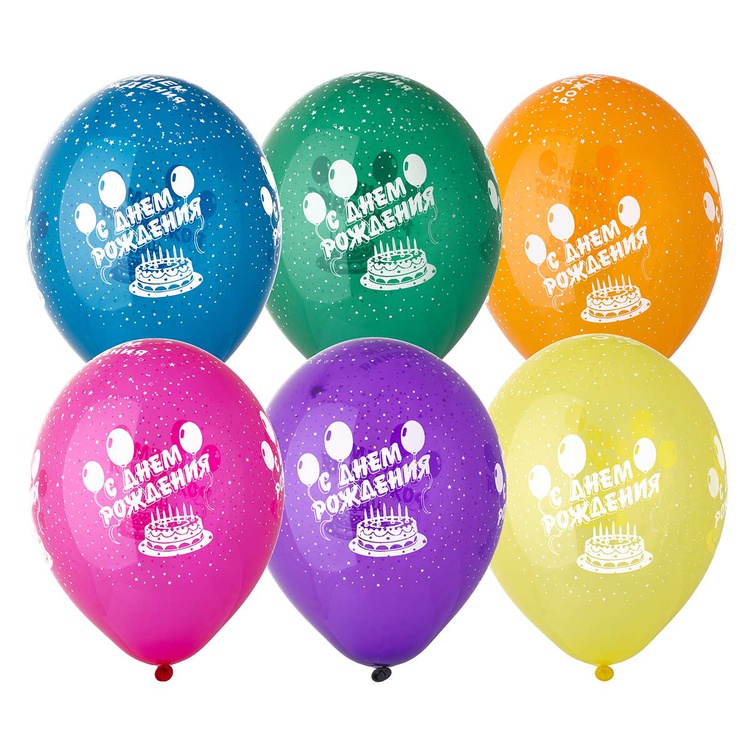 Шар латексный 35см С Днем Рождения (Ассорти)