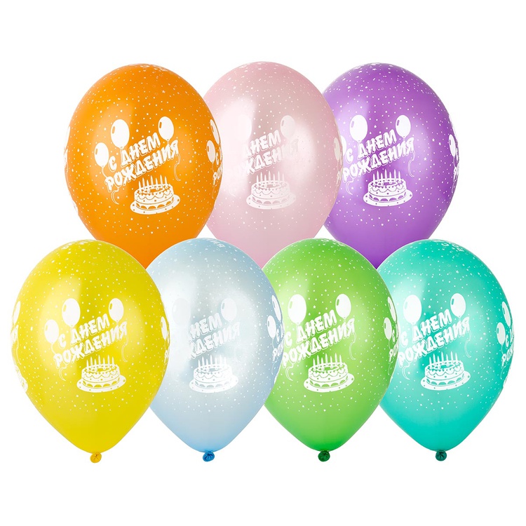 Шар латексный 35см С Днем Рождения (Ассорти)