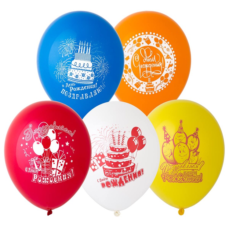 Шар латексный 35см С Днем Рождения (Ассорти)