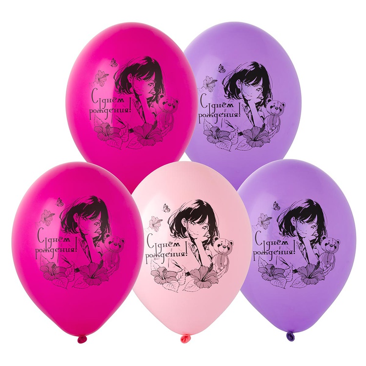 Шар латексный 35см С ДР! Девочка аниме (Ассорти)