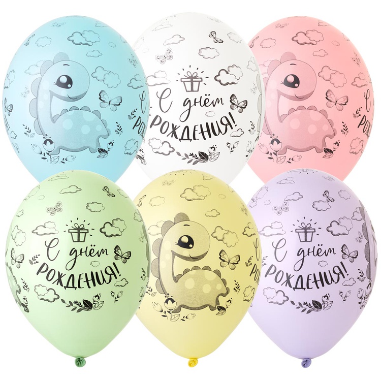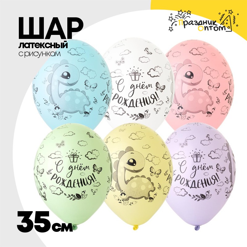 Шар латексный 35см С ДР! Динозаврик (Ассорти)