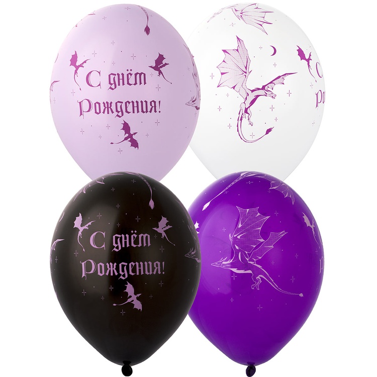 Шар латексный 35см С ДР! Дракон (Ассорти)
