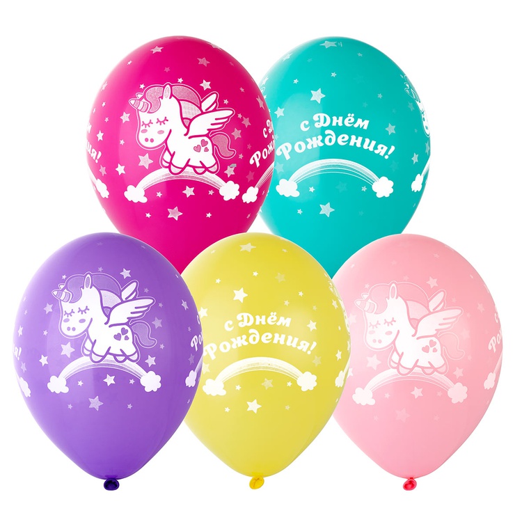 Шар латексный 35см С ДР! Единорог спящий (Ассорти)