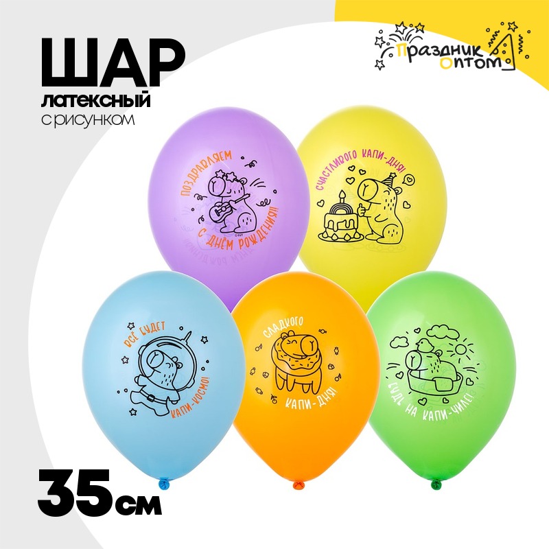 Шар латексный 35см С ДР! Капибара (Ассорти)
