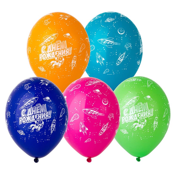 Шар латексный 35см С ДР! Космический (Ассорти)