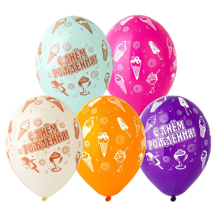 Шар латексный 35см С ДР! Мороженое (Ассорти)