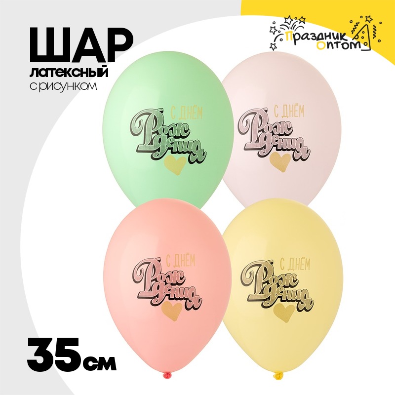 Шар латексный 35см С ДР! Сердце (Ассорти)