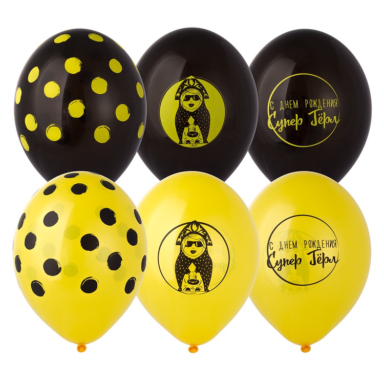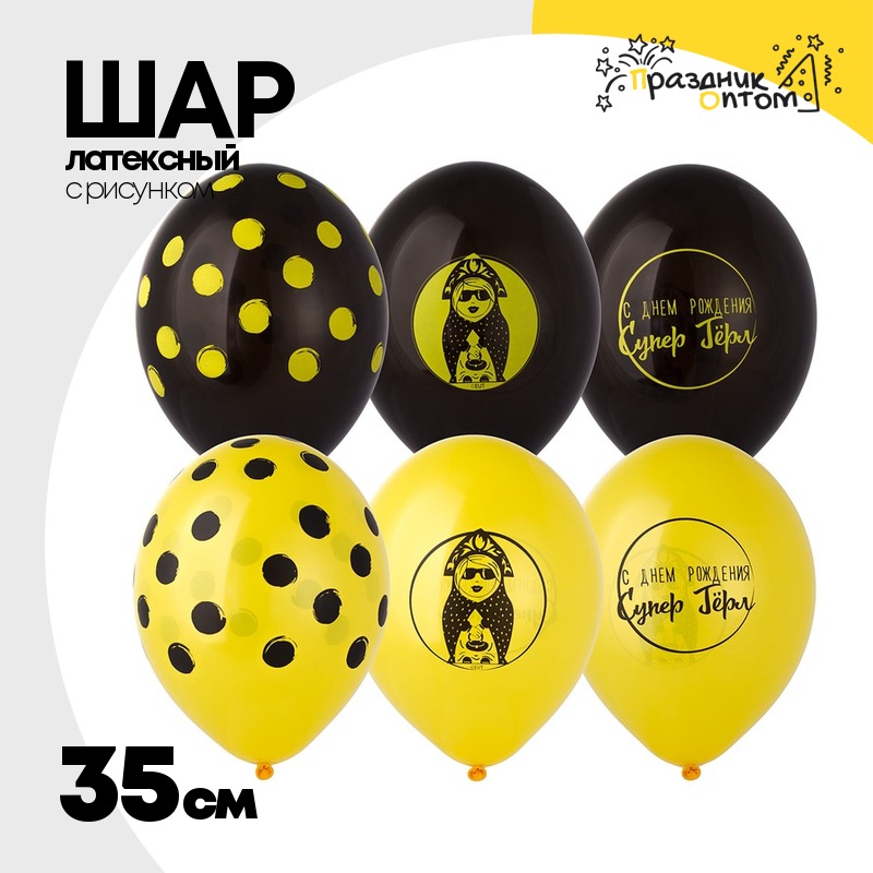 Шар латексный 35см С ДР! Супер Герл (Черный, Желтый)