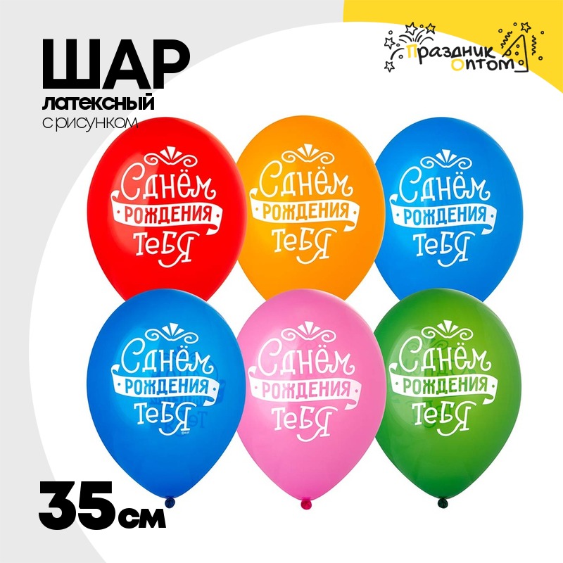 Шар латексный 35см С ДР! Тебя леттеринг (Ассорти)