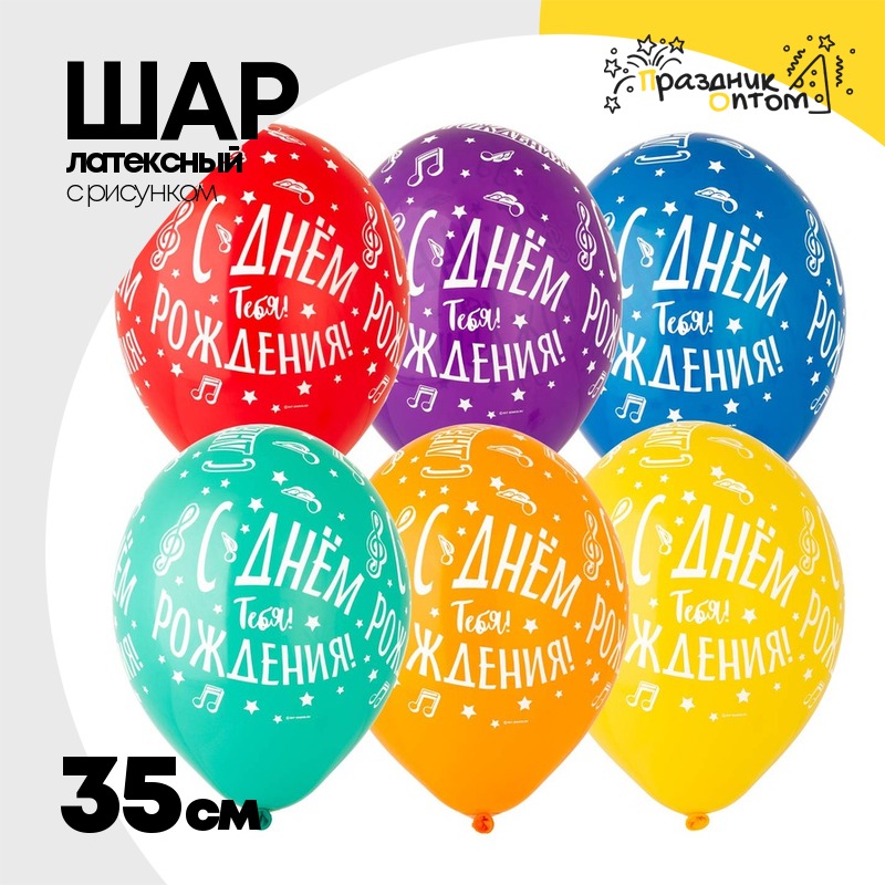 Шар латексный 35см С ДР! Тебя Ноты (Ассорти)