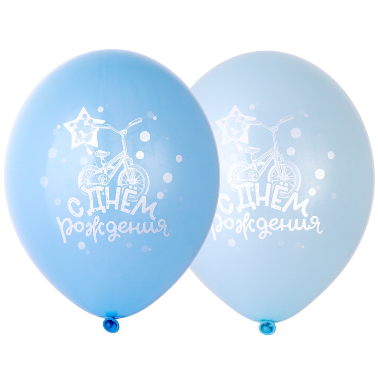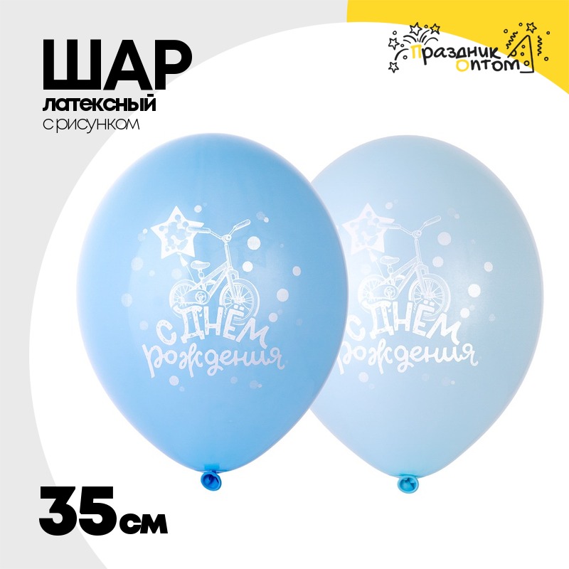 Шар латексный 35см С ДР! Велосипед (Голубой)