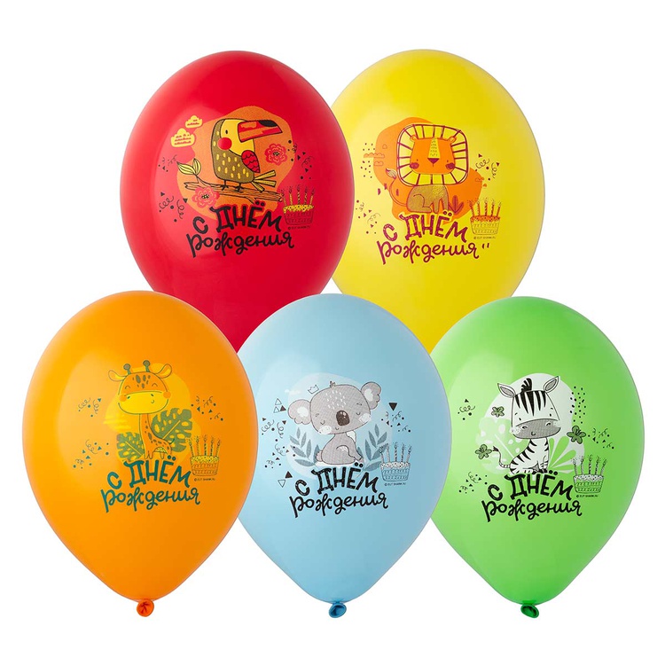 Шар латексный 35см С ДР! Животные Тропики (Ассорти)