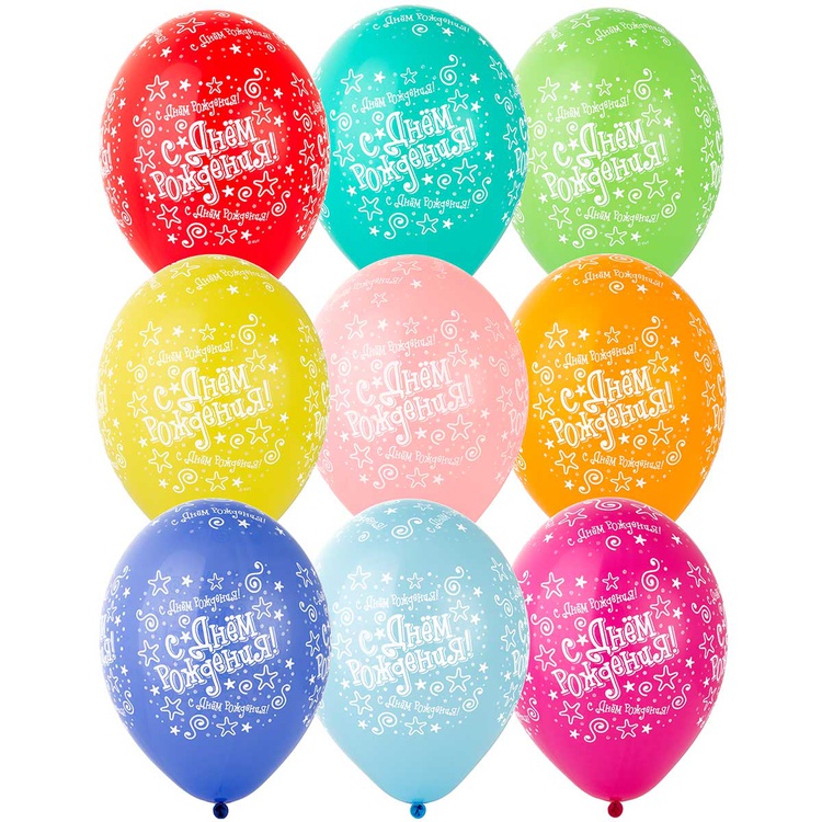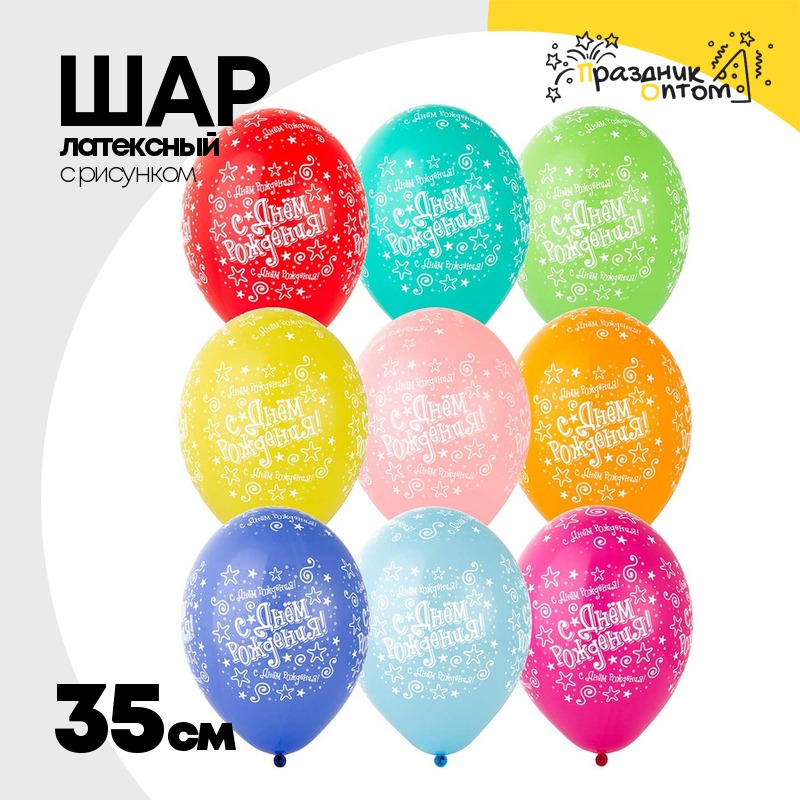 Шар латексный 35см С ДР! Звезды (Ассорти)