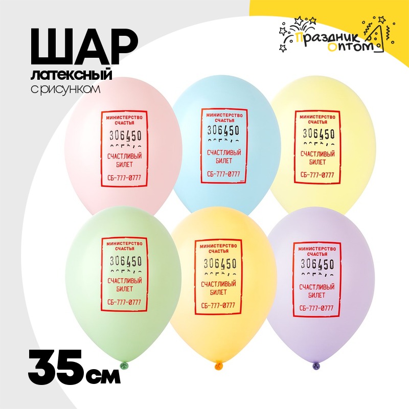 Шар латексный 35см Счастливый билетик (Ассорти)