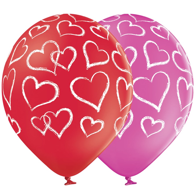 Шар латексный 35см Сердца (Красный, Розовый)