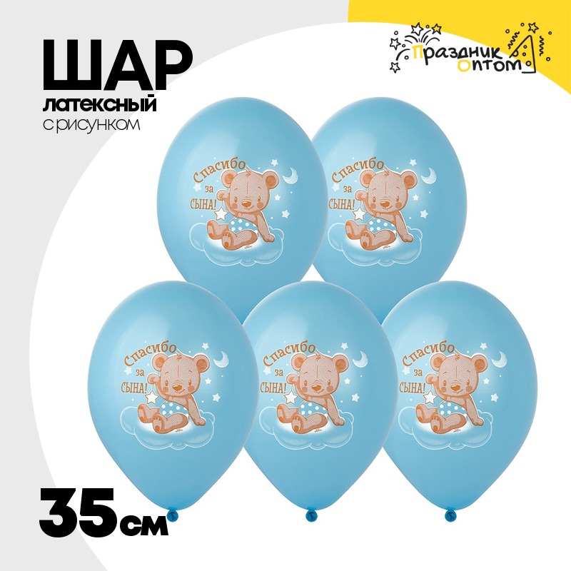 Шар латексный 35см Спасибо за Сына! (Голубой)