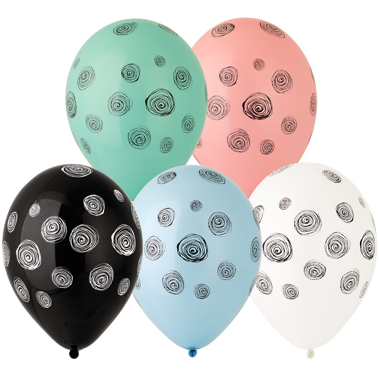 Шар латексный 35см Спирали Панды (Ассорти)