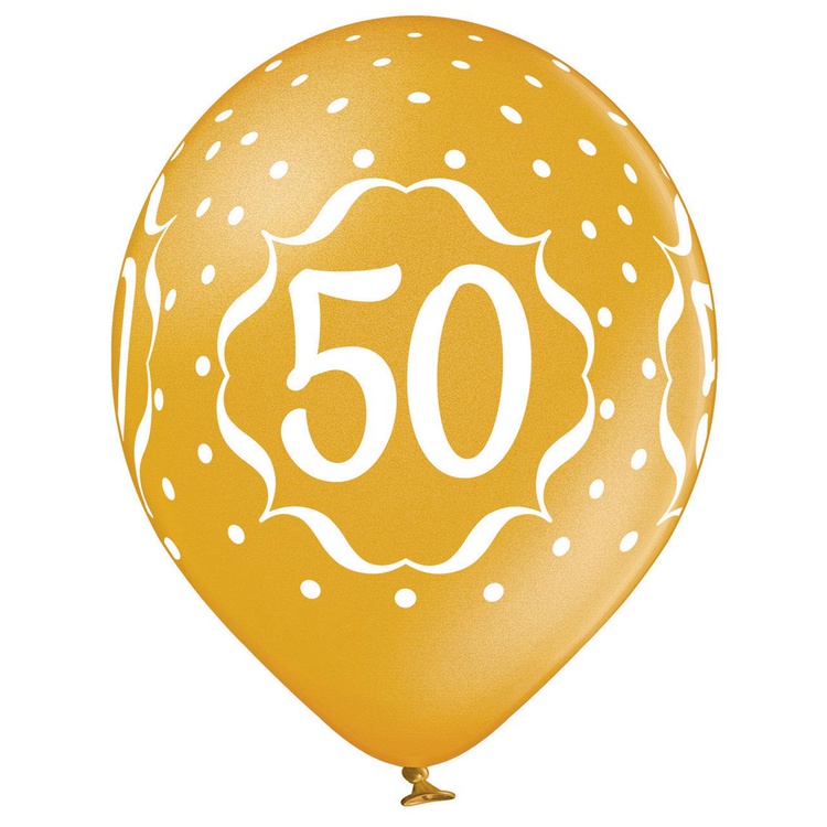 Шар латексный 35см Цифра 50 (Золотой)