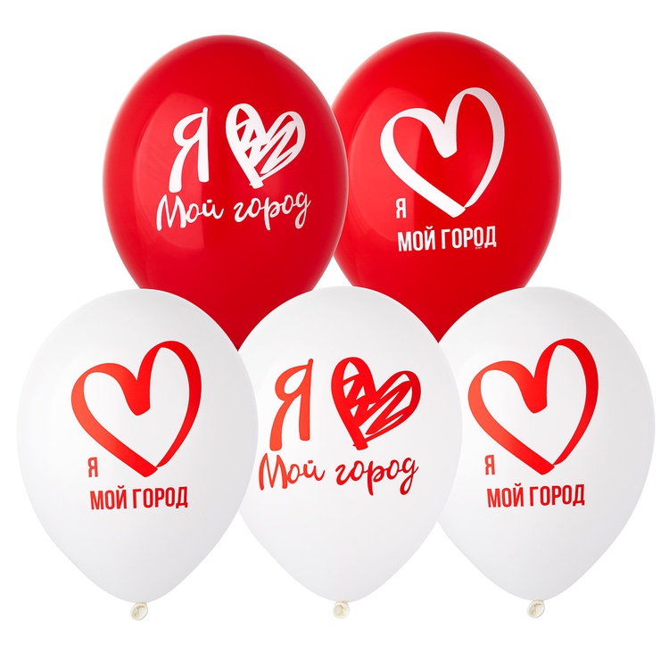 Шар латексный 35см Я люблю мой Город (Белый, Красный)