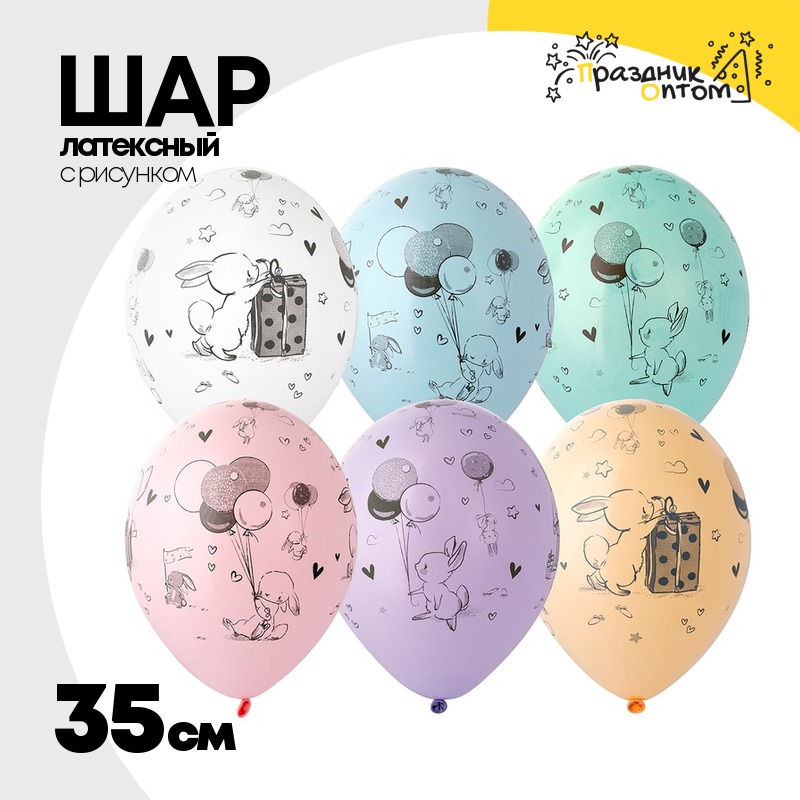Шар латексный 35см Зайчик (Ассорти)