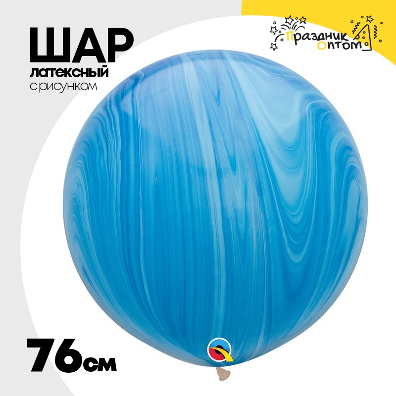 Шар латексный 76см Супер Агат Мрамор (Синий)