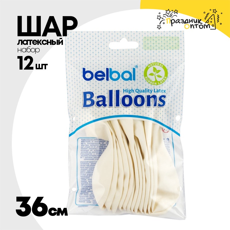Шар латексный Экстра Набор 12 шт Пастель 36 см (Белый)