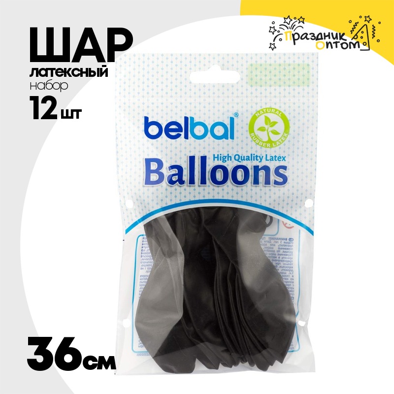 Шар латексный Экстра Набор 12 шт Пастель 36 см (Черный)
