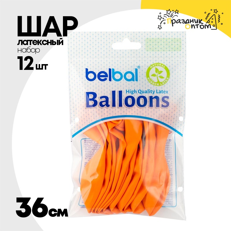 Шар латексный Экстра Набор 12 шт Пастель 36 см (Оранжевый)