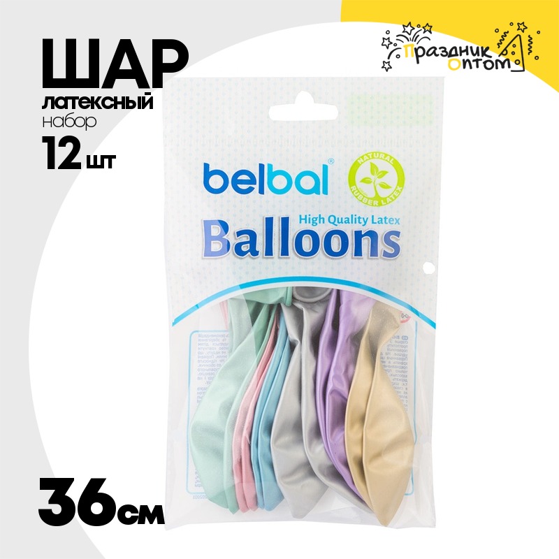 Шар латексный Glossy Набор 12 шт Хром 36 см (Ассорти)