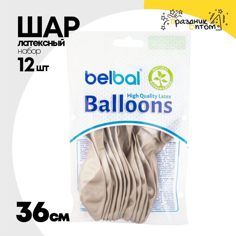 Шар латексный Glossy Набор 12 шт Хром 36 см (Бежевый)