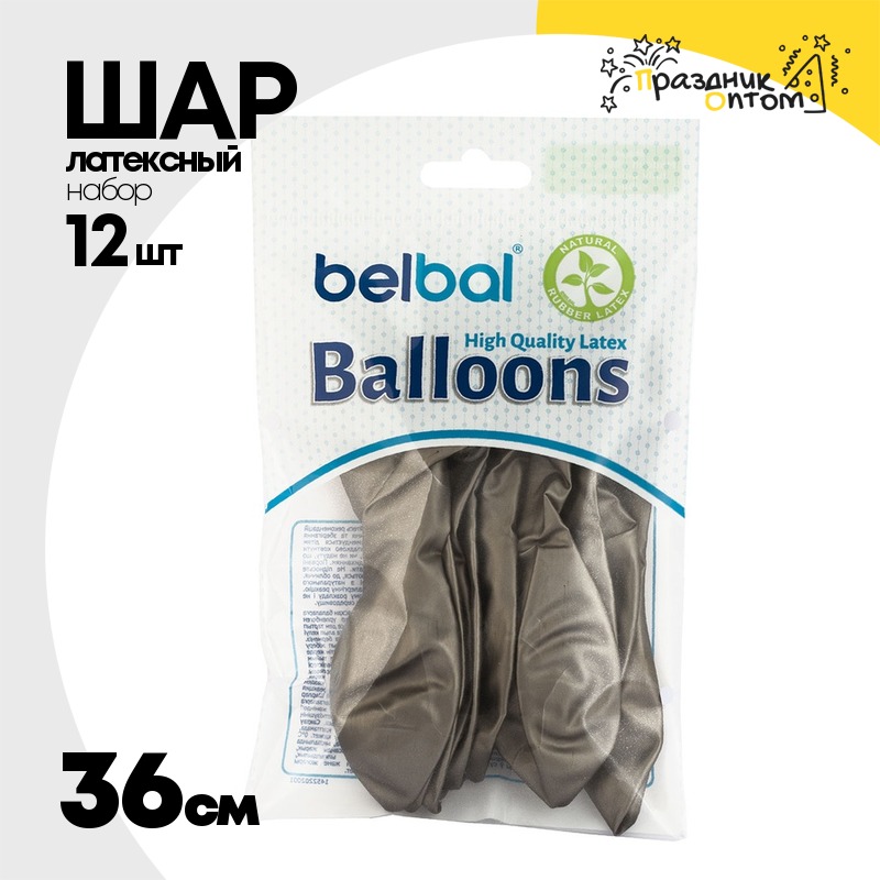Шар латексный Glossy Набор 12 шт Хром 36 см (Черный)