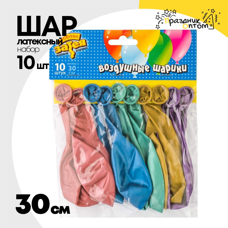 Шар латексный Набор 10 шт Хром 30 см (Ассорти)