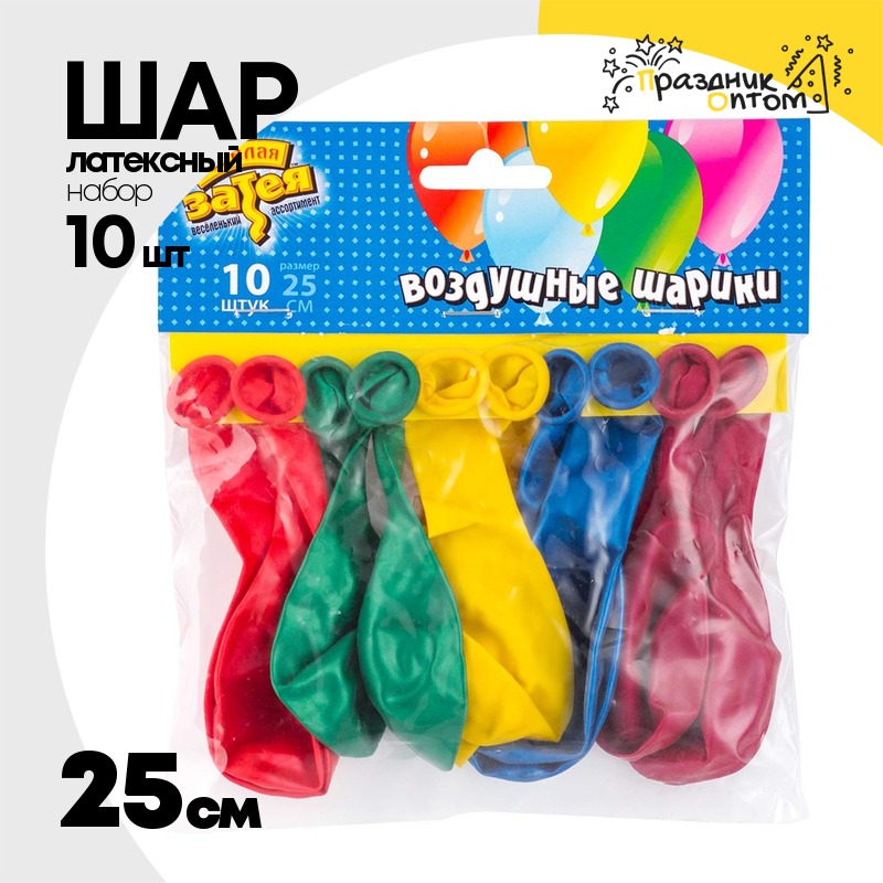 Шар латексный Набор 10 шт Металлик 25 см (Ассорти)