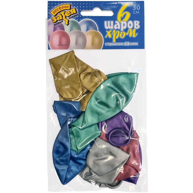 Шар латексный Набор 6 шт Хром 30 см (Ассорти)