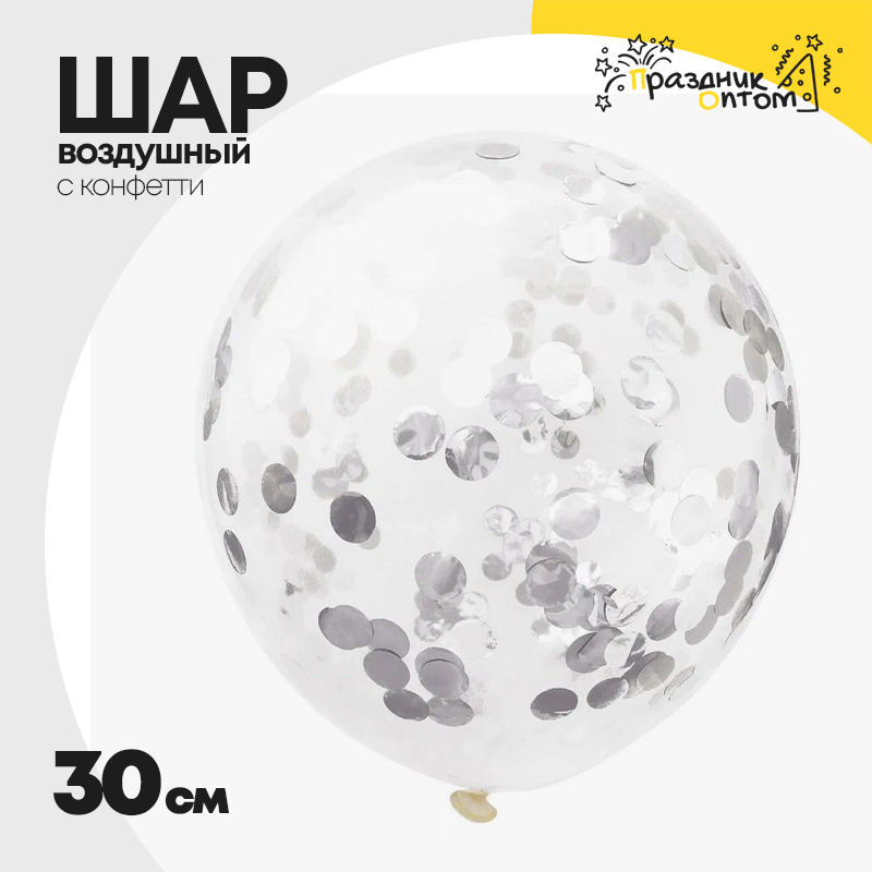 Шар латексный С конфетти 30 см (Серебряный)