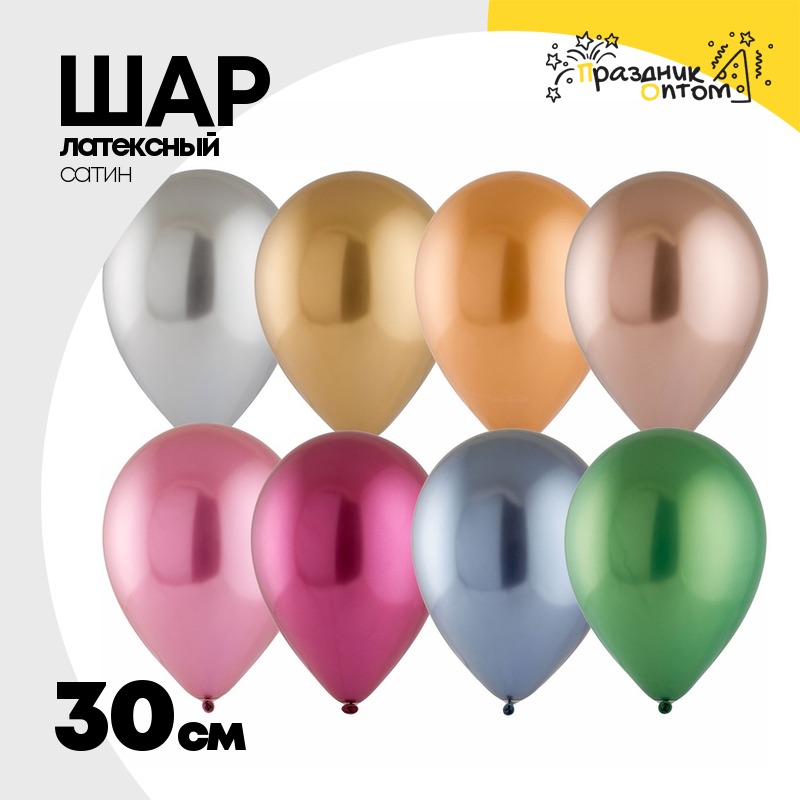 Шар латексный Сатин Хром 30 см (Ассорти)
