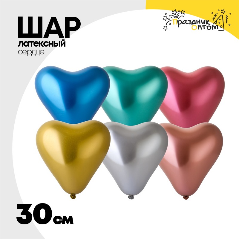 Шар латексный Сердце Хром 30 см (Ассорти)
