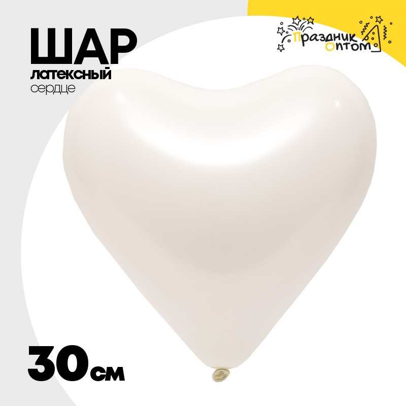 Шар латексный Сердце Стандарт 30 см (Белый)
