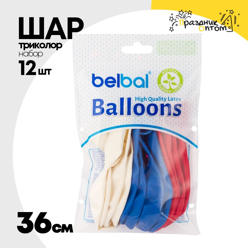 Шар латексный Триколор Набор 12 шт Пастель 36 см (Ассорти)