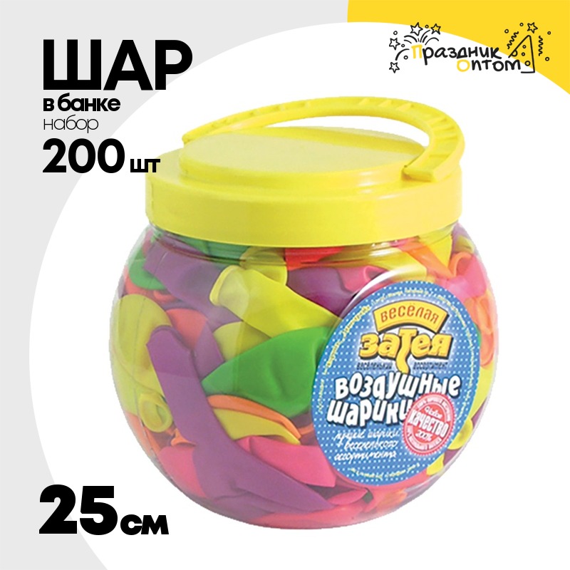Шар латексный В банке Набор 200 шт Неон 25 см (Ассорти)