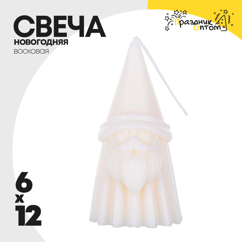 свеча 6 х 12 новогодняя санта восковая (белый)