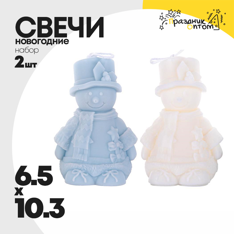 свеча 6.5 х 10.3 набор 2шт новогодняя снеговик восковая (белый, синий)