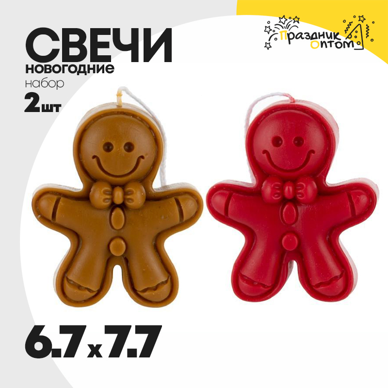свеча 6.7 х 7.7 набор 2шт восковая имбирный пряник (красный, коричневый)